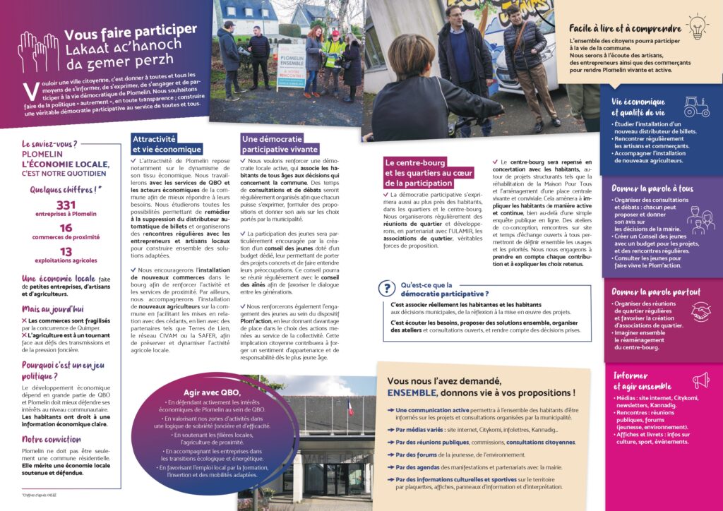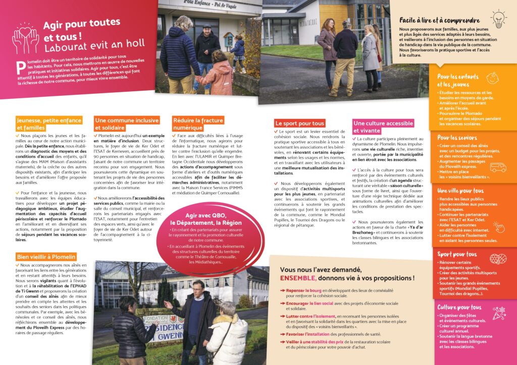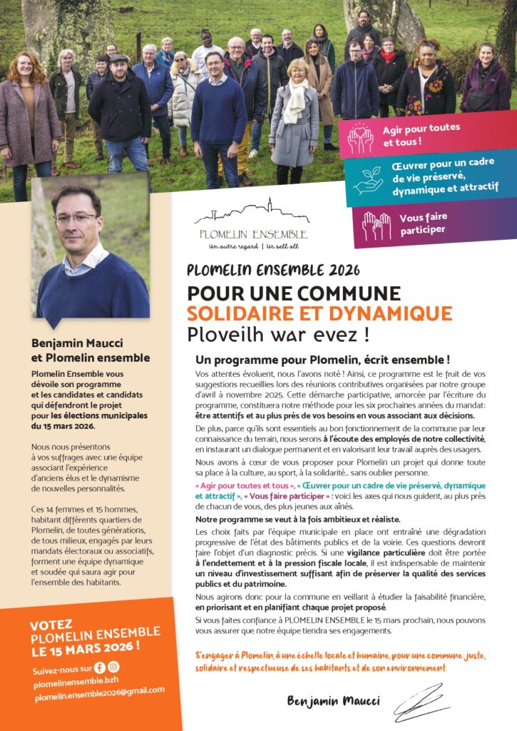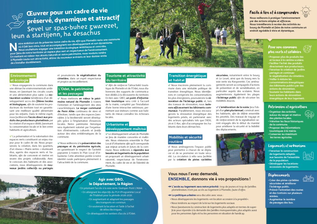 Notre programme a été écrit avec vous, lors de réunions publiques, d’ateliers citoyens et d’échanges sur le terrain. Il repose sur trois priorités simples et lisibles : Agir pour toutes et tous, en plaçant la solidarité, l’enfance, les familles, les aînés et l’inclusion au cœur de l’action municipale ; Œuvrer pour un cadre de vie préservé, dynamique et attractif, en conciliant environnement, logement, mobilités, services et développement maîtrisé ; Vous faire participer, en instaurant une démocratie locale vivante et concrète. Notre ambition est réaliste, planifiée et responsable.